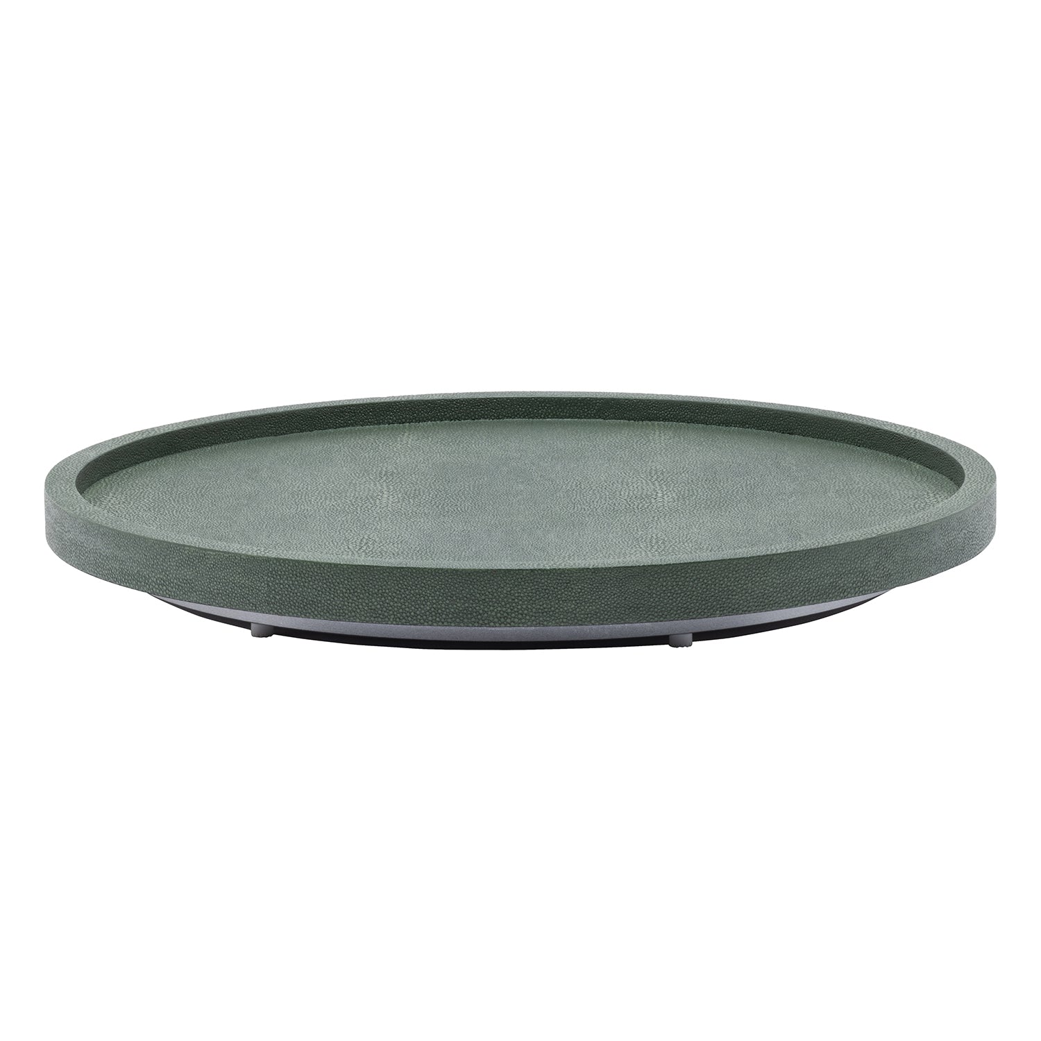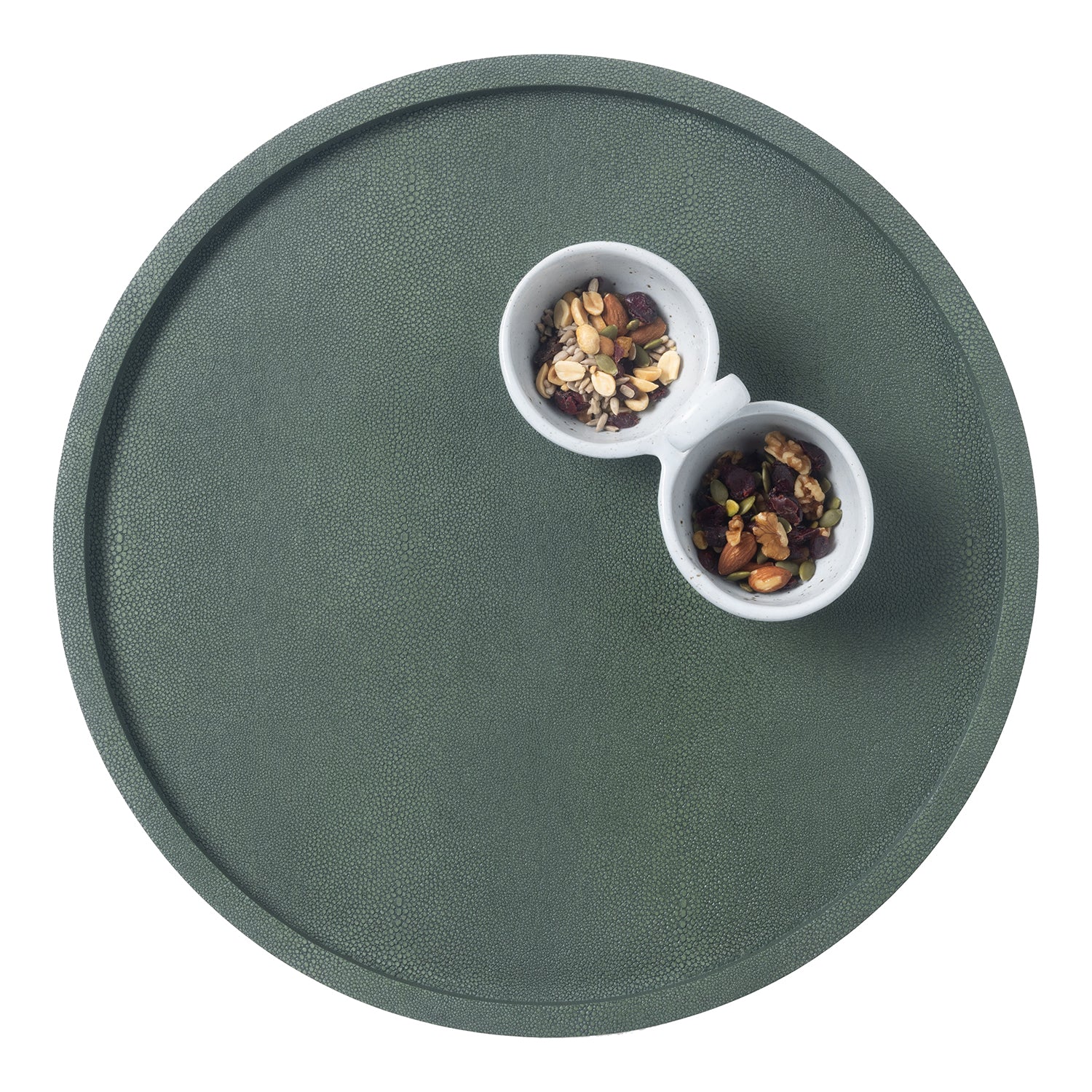 Realistic faux shagreen and sharp, clean edges put a refined spin on the classic lazy Susan.