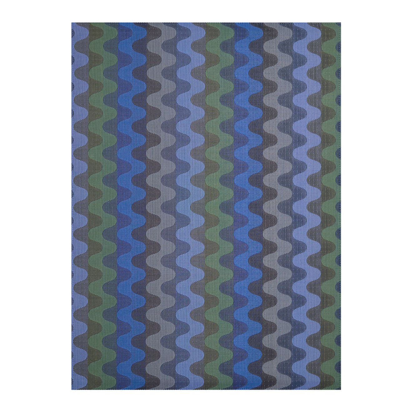 A softened and richly textured take on classic zigzags, Wiggle embraces bold curves and joyful color. A closer look reveals the intricacy of its woven structure, in which thoughtfully sequenced hues both bracket and form the undulating lines.