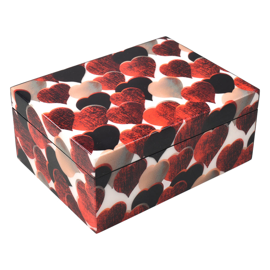 Lacquer Hinged 8" Medium Box (Hearts Design)