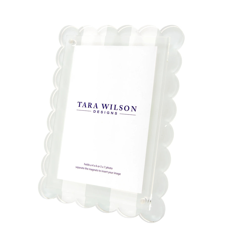 Scallop Light Grey & White Stripe Lucite Picture Frame (5x7)