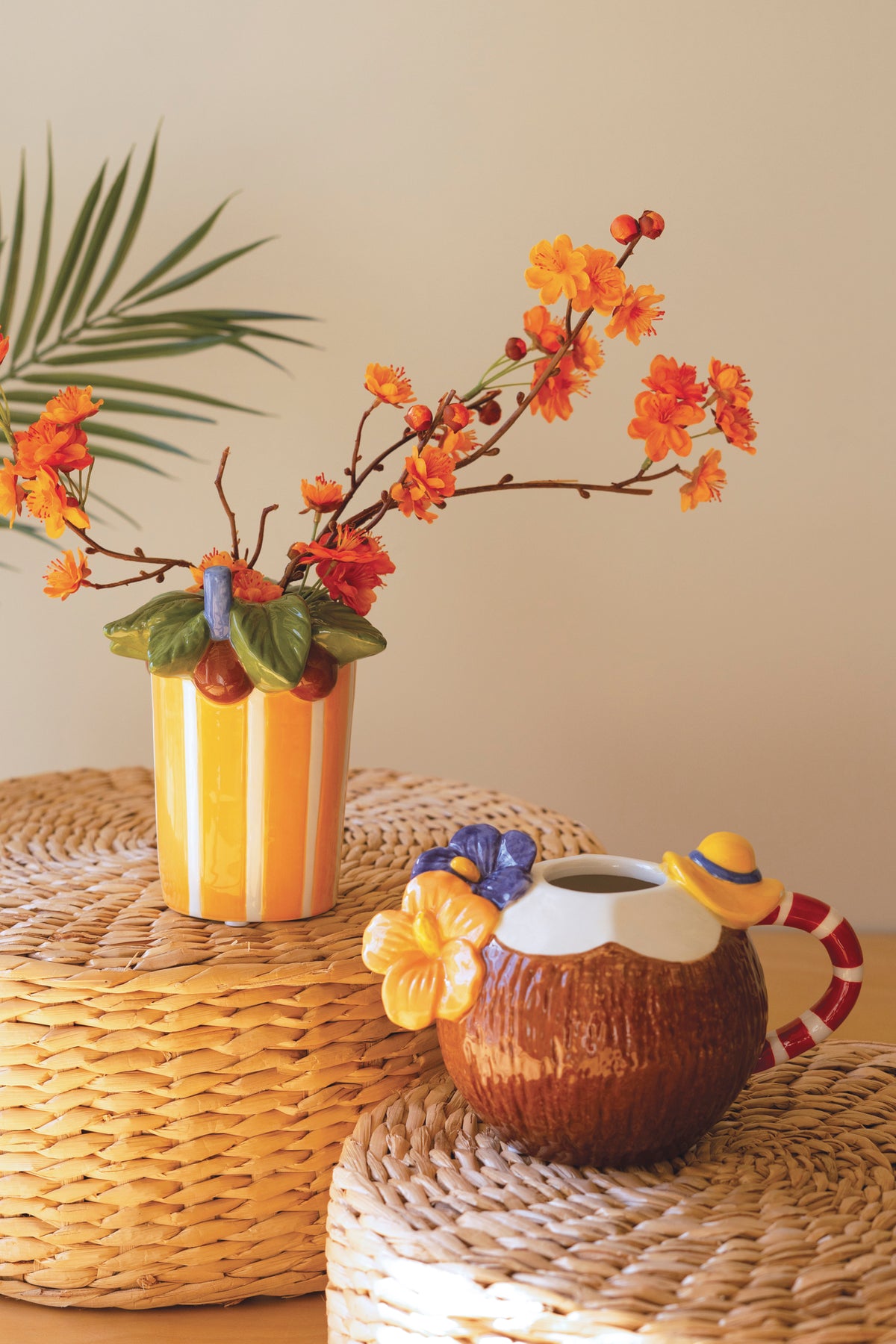 These cocktail vases bring breezy island vibes to any room. Their fun textures and bright toppers make every arrangement feel like a tiny vacation. Perfect for a space that could use a sip of tropical cheer. Set includes 2 pieces. One each size/style.
