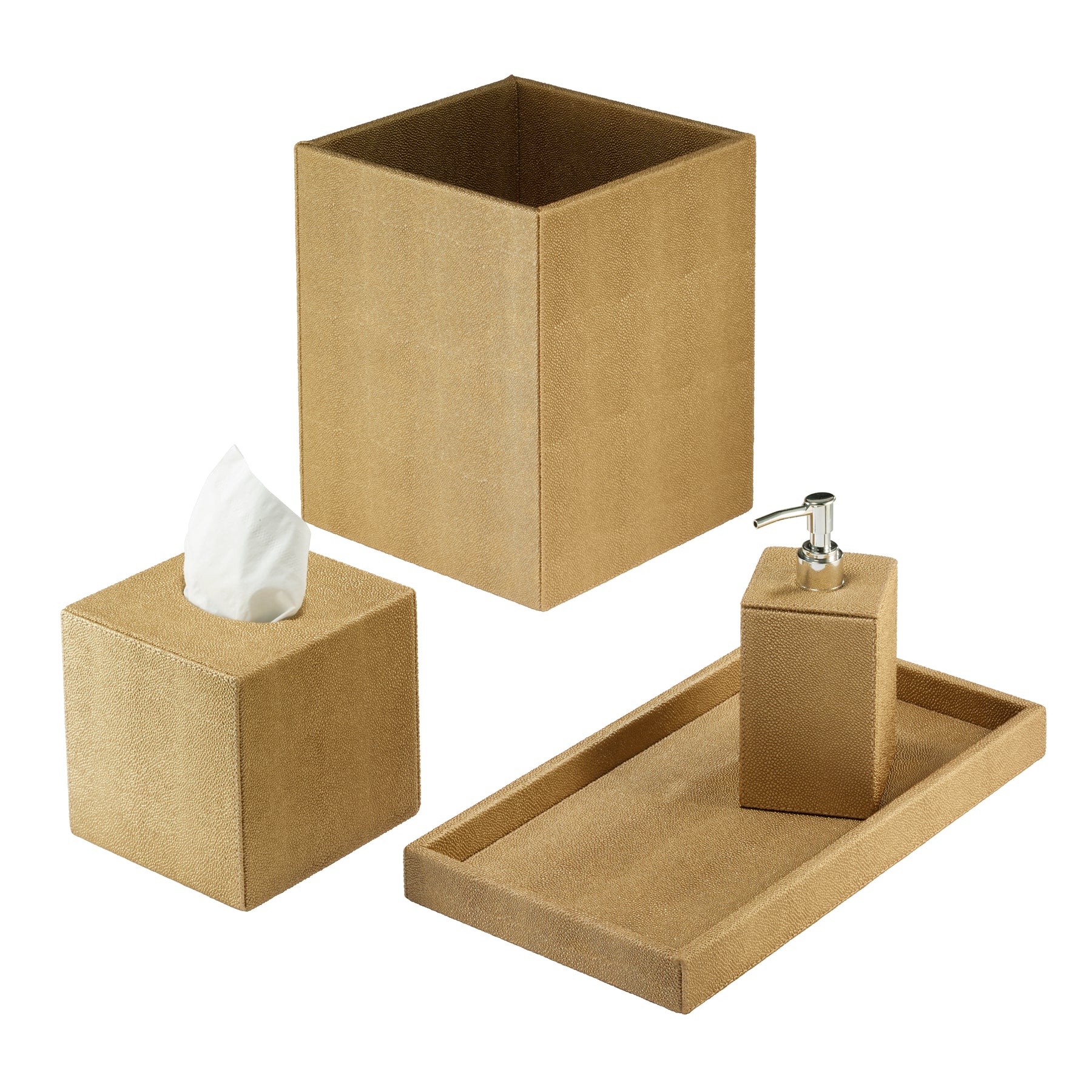 Featuring the same material used in our Stingray Placemats, this brand-new easy-care Bath Accessories line will bring an exotic touch into your room. They are soft to the touch, while featuring a sparkling metallic finish that’s a sure way to elevate any environment! Ideal for gifting friends with excellent taste!