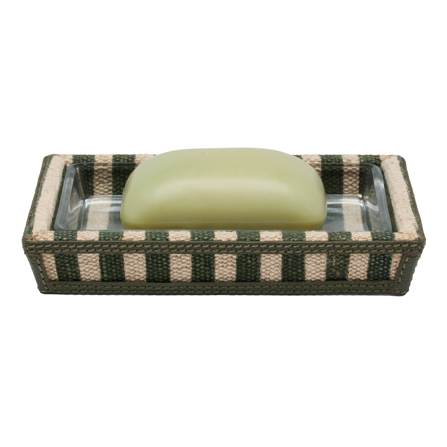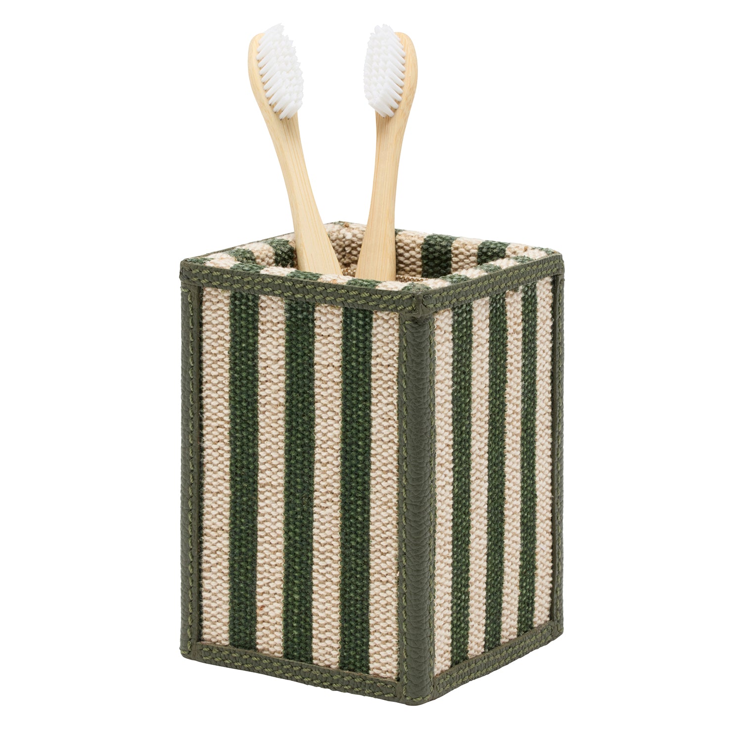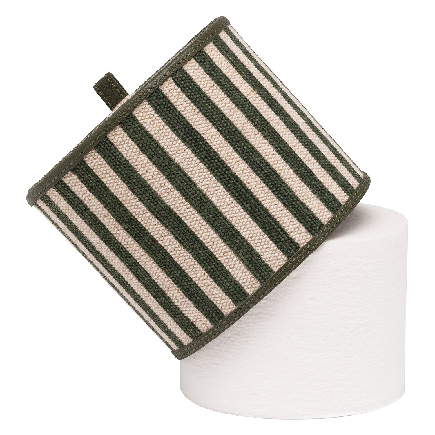 Franklin Emerald Striped Cotton Jute/Forest Leather Bathroom Accessories