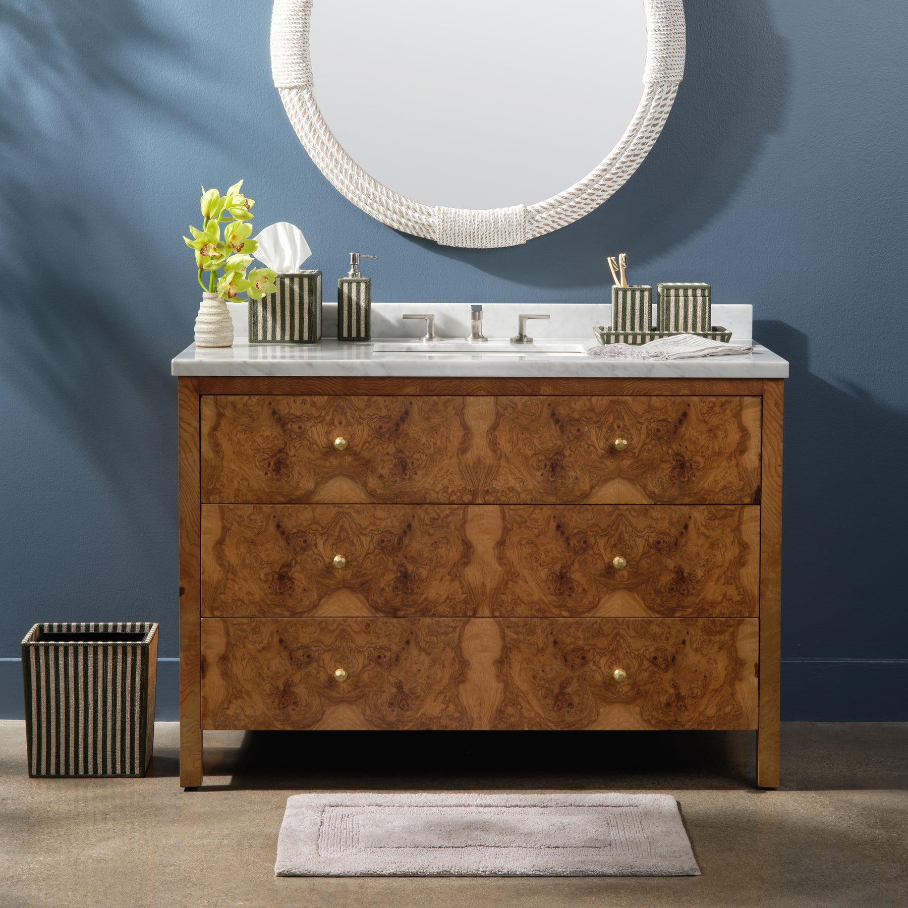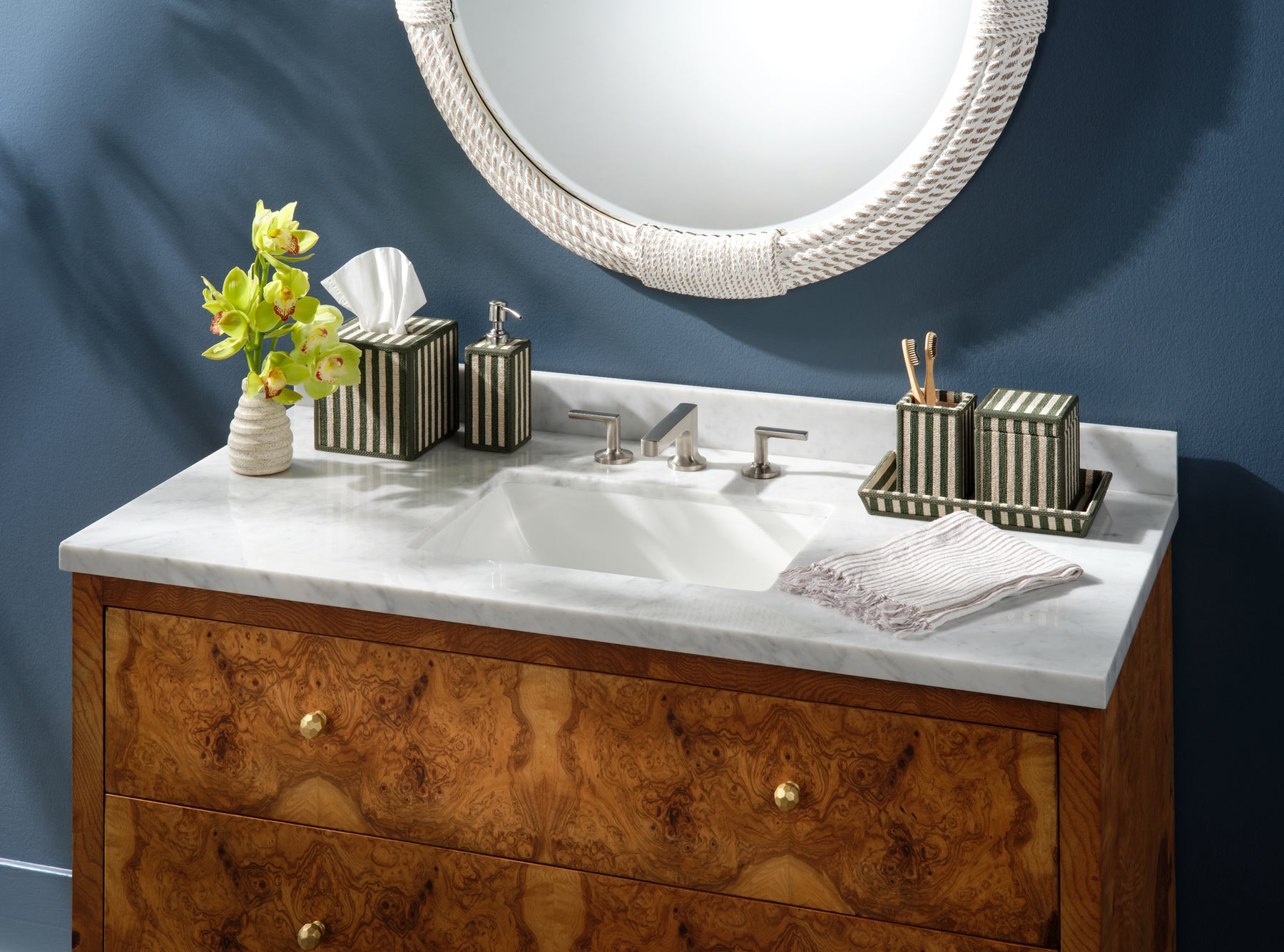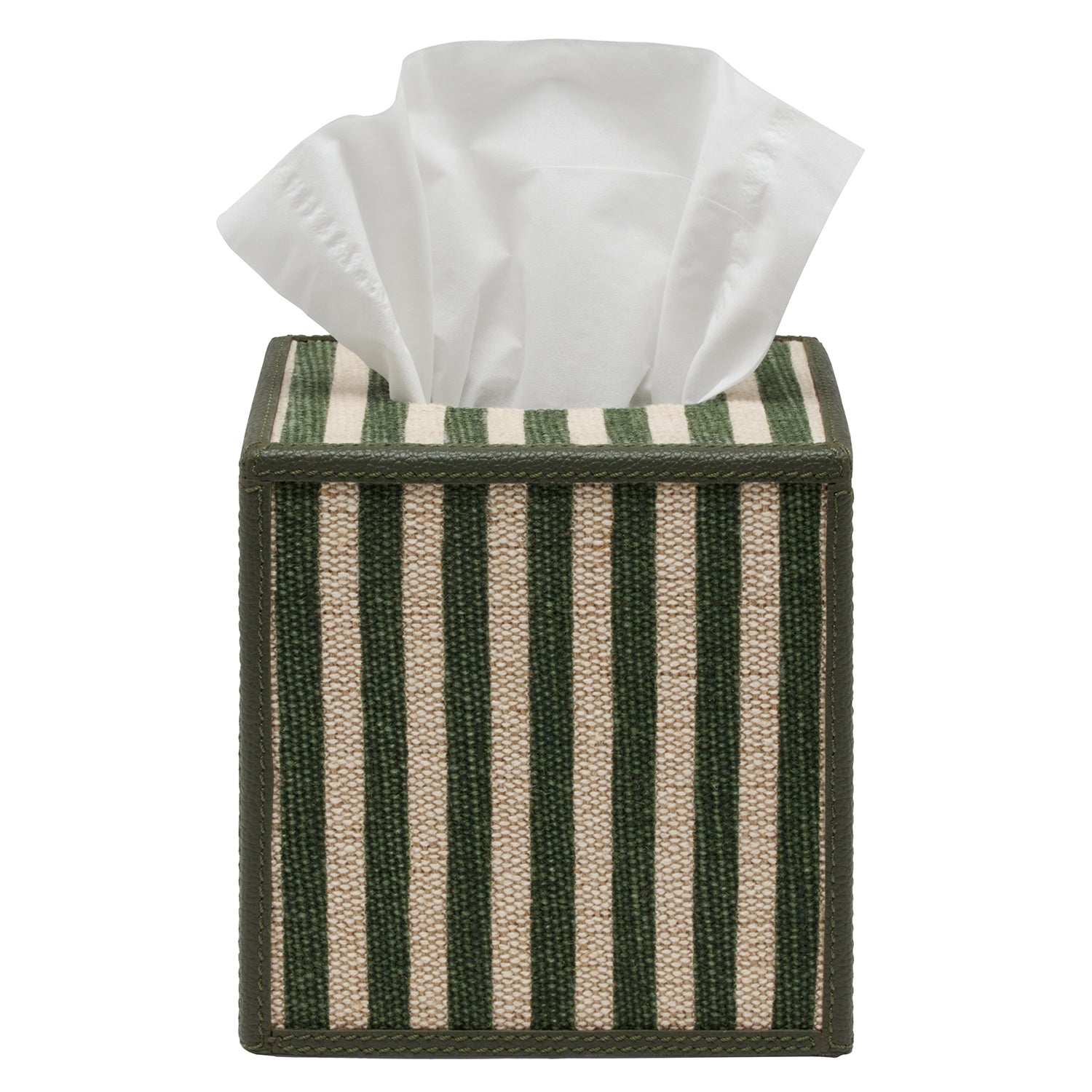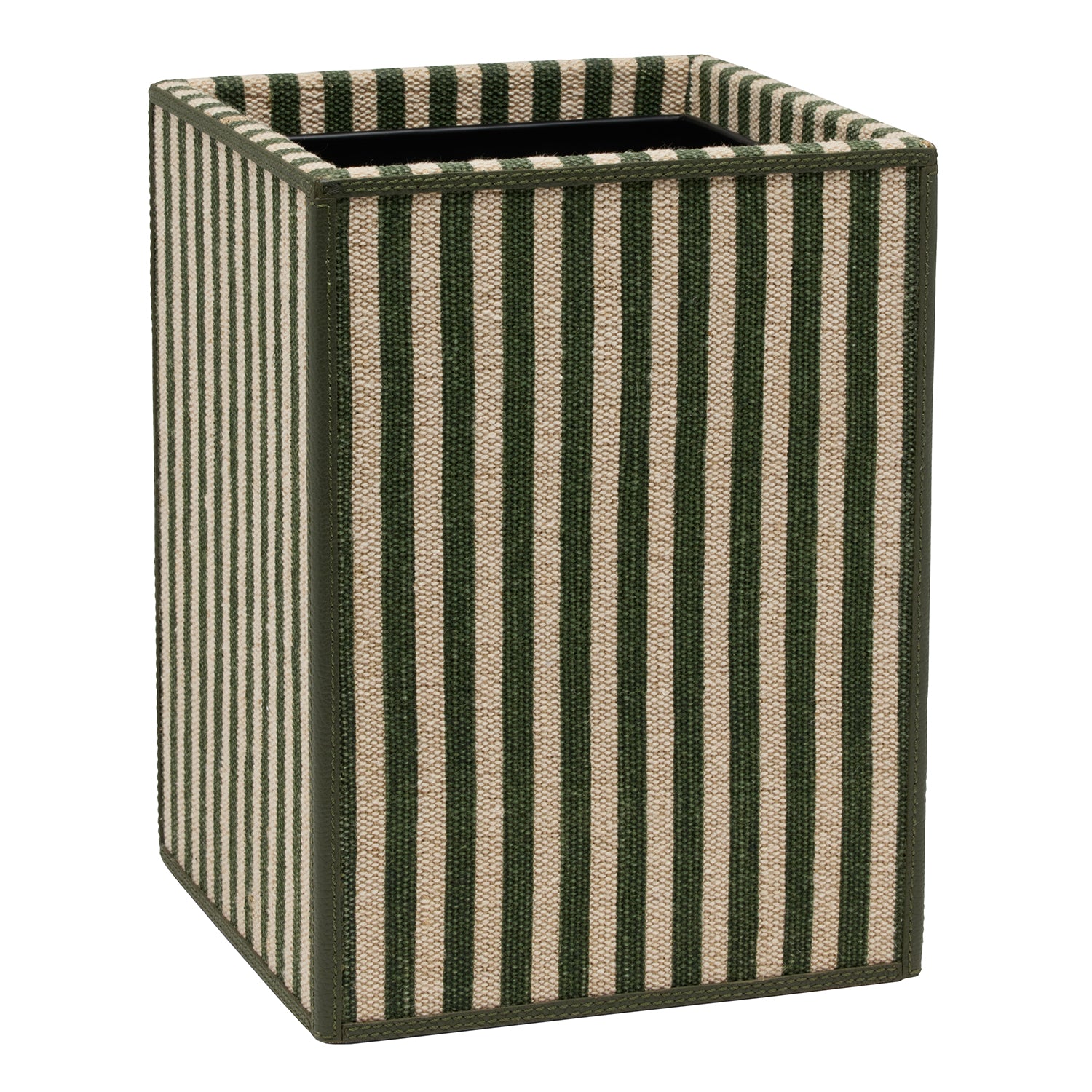 Franklin Emerald Striped Cotton Jute/Forest Leather Bathroom Accessories