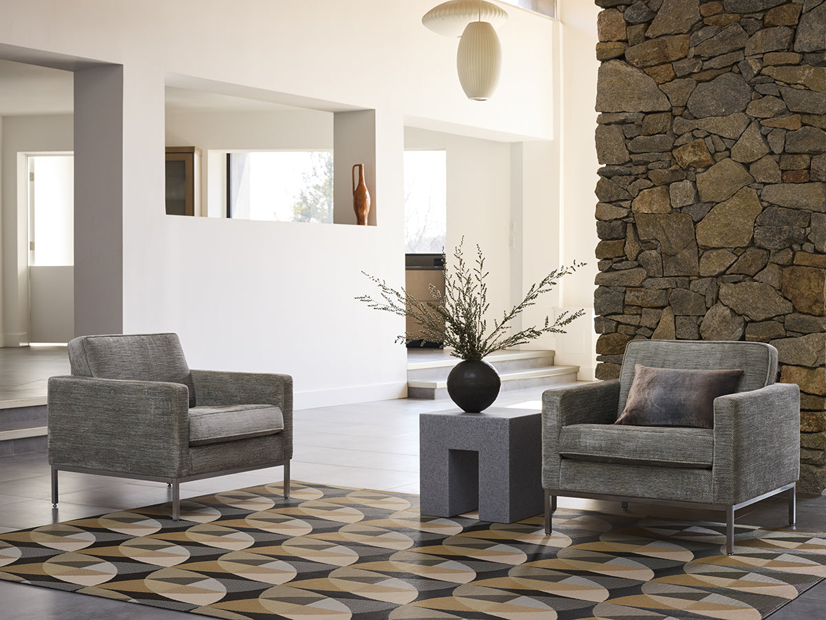 Exploring the interplay of pattern and color, Canopy is a bold in scale and versatile in use. The Chilewich design team developed this double weave with an eye to how its precisely engineered repeat of petal-like forms in multi-tonal hues would play out when multiplied vertically and horizontally across the surface of rugs. The result is geometric in character, as lines and curves align to create a lively yet refined foundation for contemporary life.