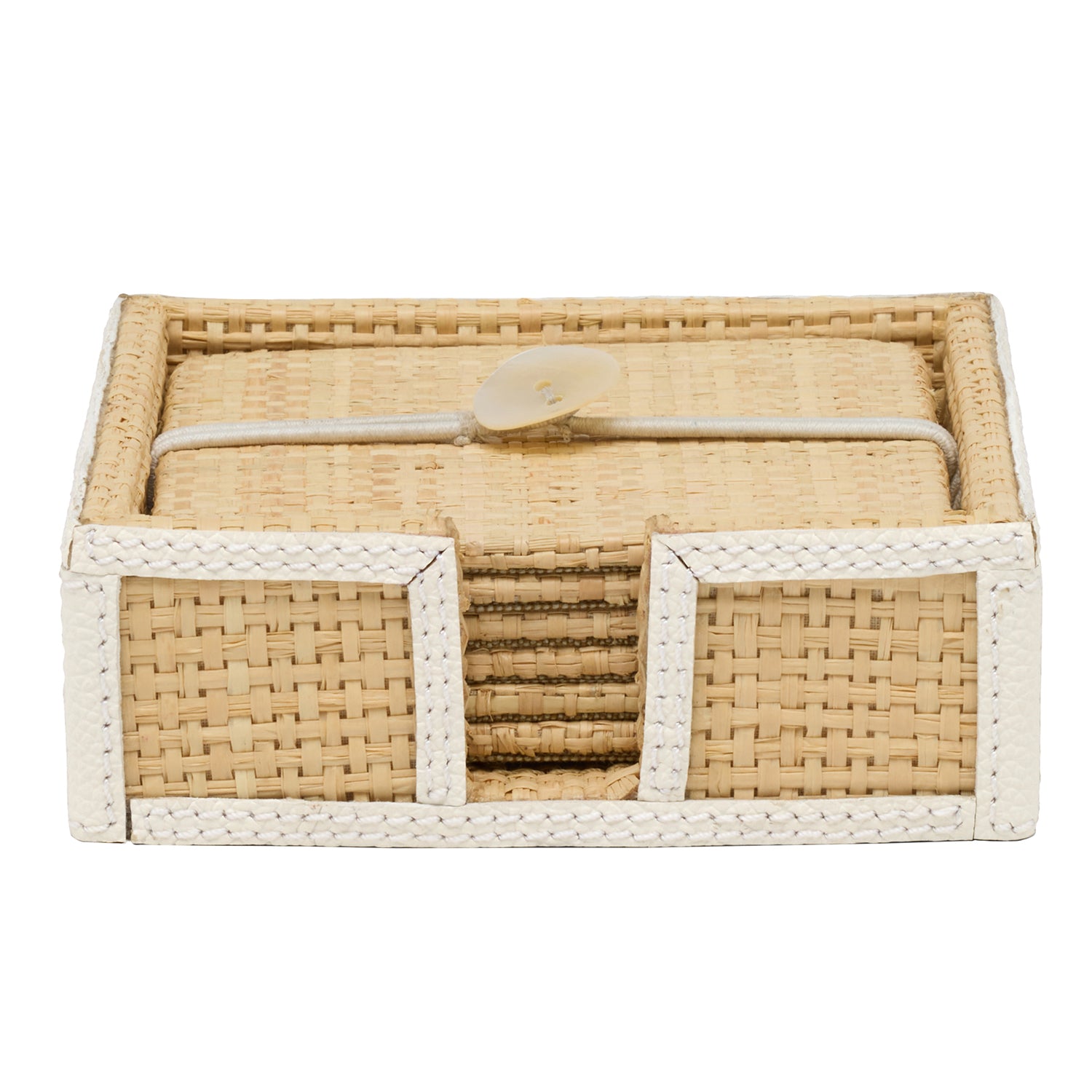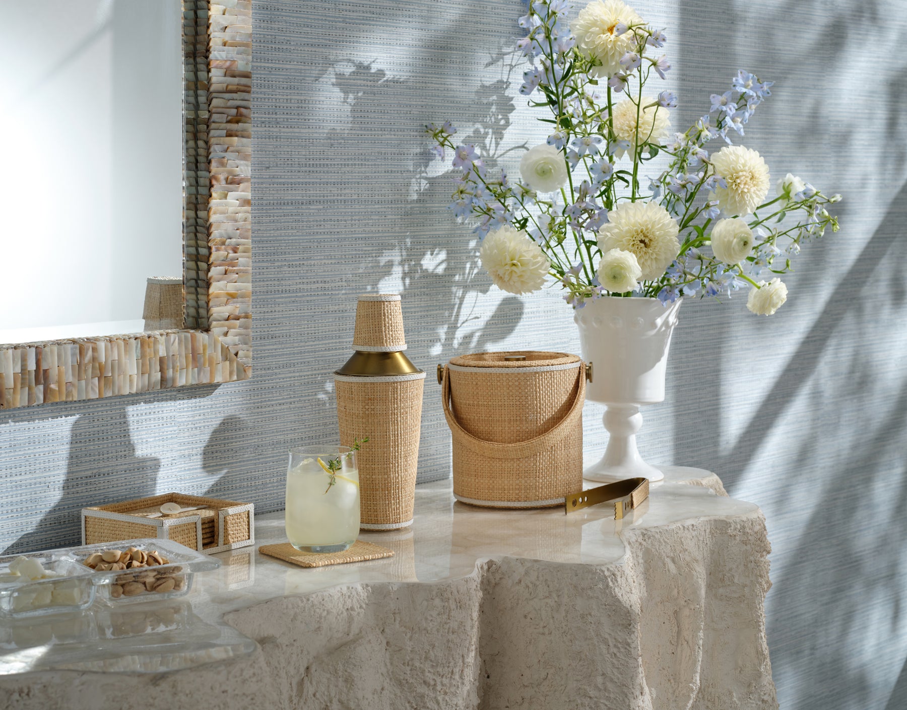 Our Gable bar collection, crafted from raffia with a classic leather trim, offers a touch of tropical style.