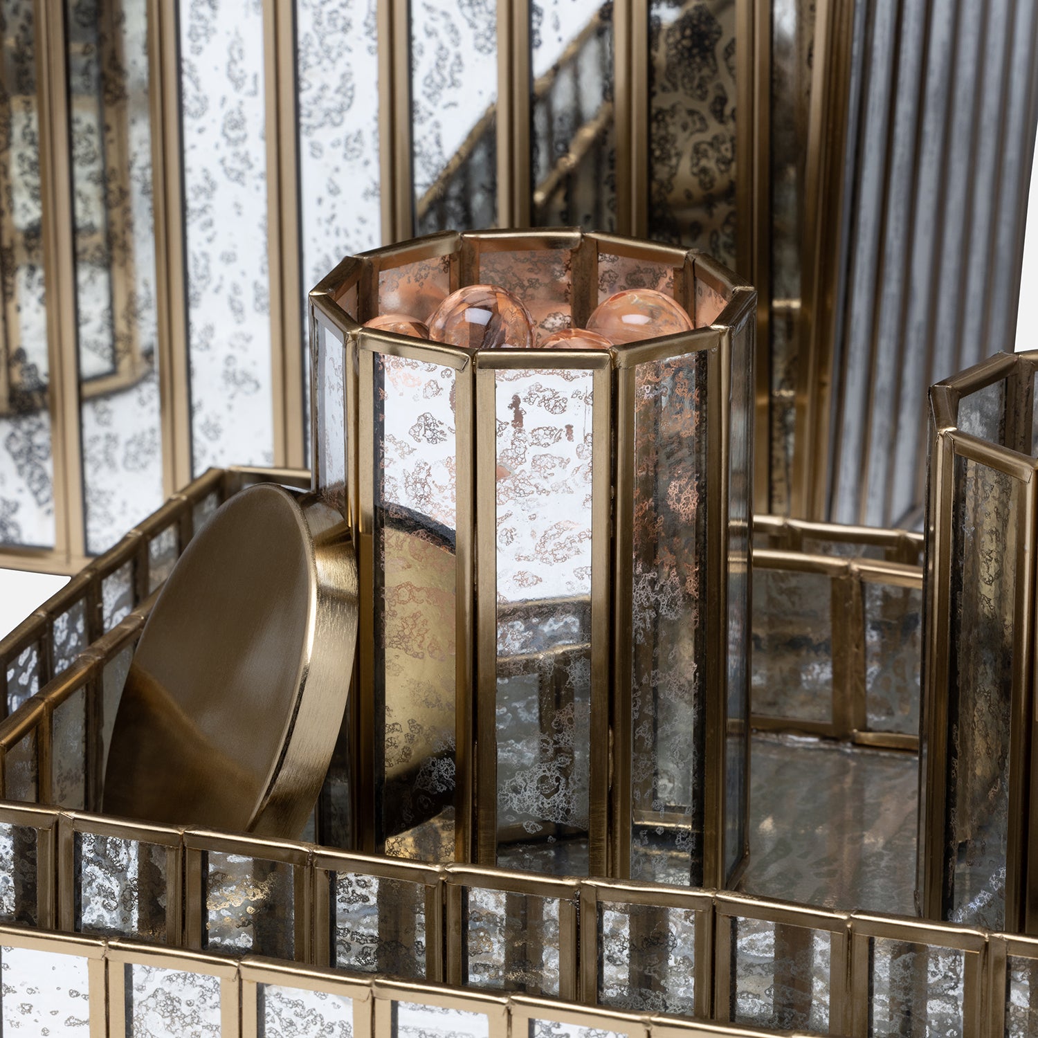 Reflect sophistication and whimsy from all angles with the Grevena. Crafted from individually cut and placed eglomise glass, its geometric design adds dimension and intrigue to any bath.