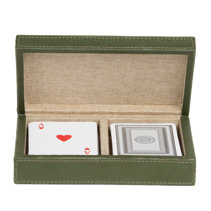 Forest Full-Grain Leather. Textured leather card holder lined with chambray. Now available in Forest finish.