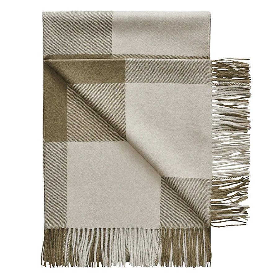 Buffalo Baby Alpaca Throw (Olive Green with Putty Checks)