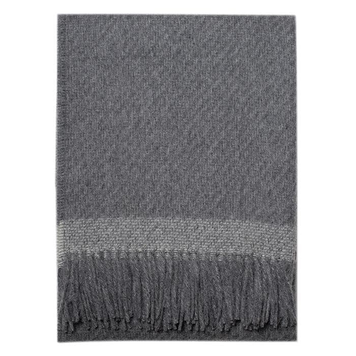 Sophisticated warmth! Wrap yourself in these stunning Alpaca & Lambswool over-sized throws. The modern twill design with the contrasting stripe at the fringe border is sure to grab attention. Super warm with a heavy weight of 450gm. Designed in Canada and crafted in Peru.