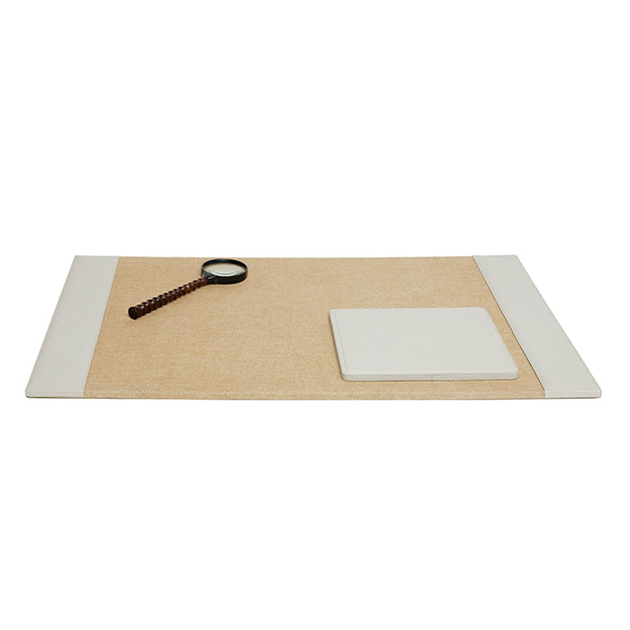 Asby Light Gray Full-Grain Leather Desk Blotter Set