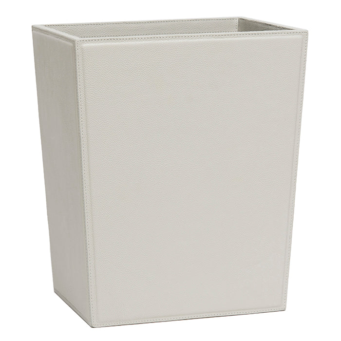 Asby Light Gray Full-Grain Leather Rectangle Wastebasket
