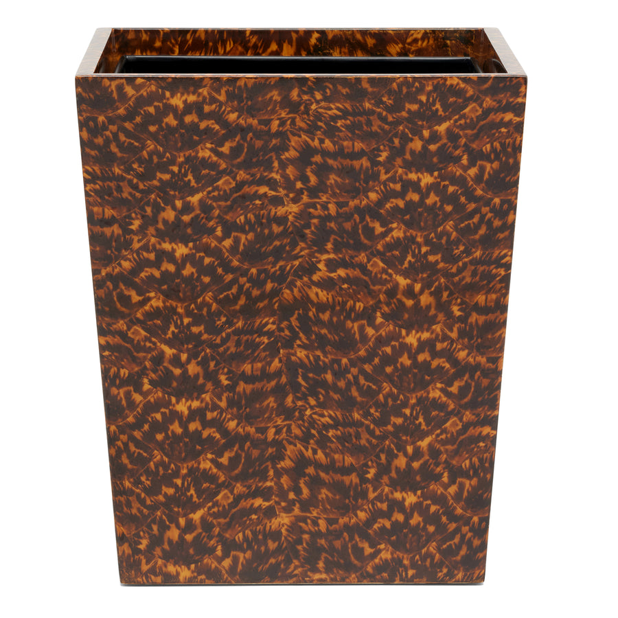 Carmel High-Gloss Faux Tortoise Square Wastebasket