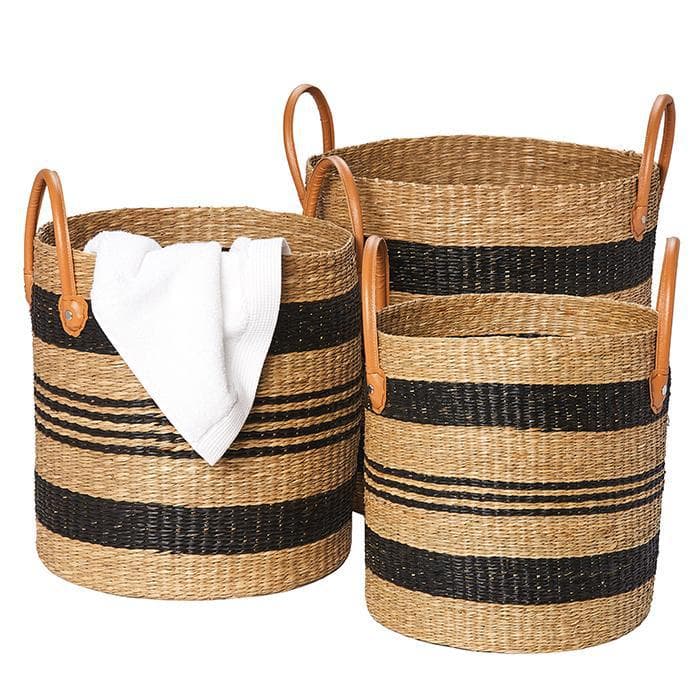 Hudson Black Natural Seagrass Baskets, Set of 3