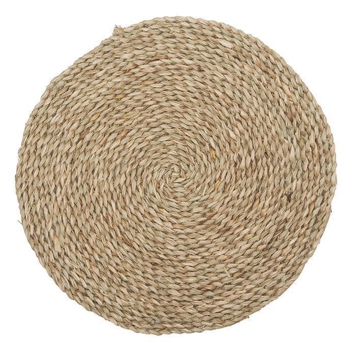 Twisted seagrass is wound like rope to create the natural spiral pattern of our Lucian—a graphic way to set a tastefully casual table.