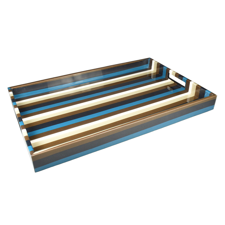 Lacquer Rectangle Tray 22" (Blue, Dark Brown, Taupe and White Stripe)