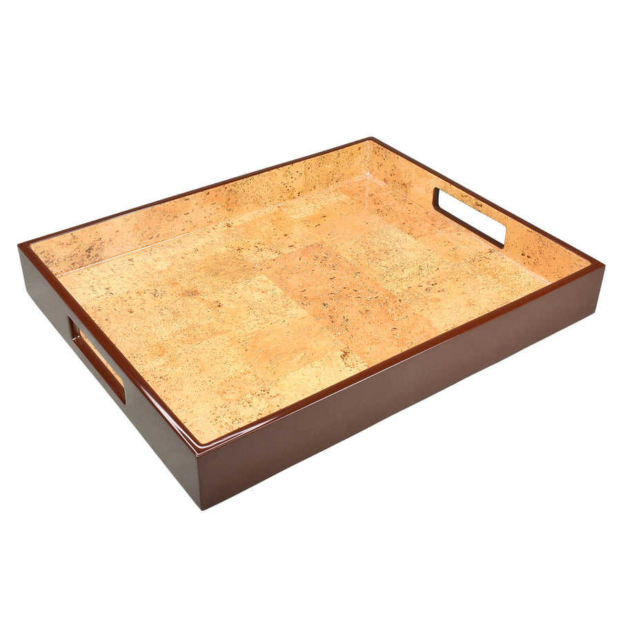 Lacquer Small Rectangle Tray 15" (Cork with Coffee Brown)