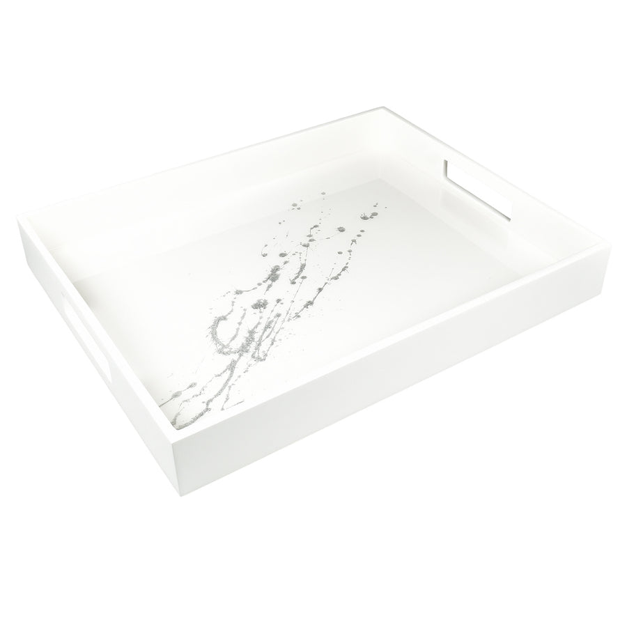 Lacquer Small Rectangle Tray 15"x 12" (Artful Silver with White)