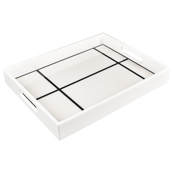 Lacquer Small Rectangle Tray (White with Black Grid)