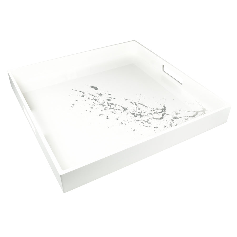 Lacquer Square Tray 16" x 16" (Artful Silver with White)