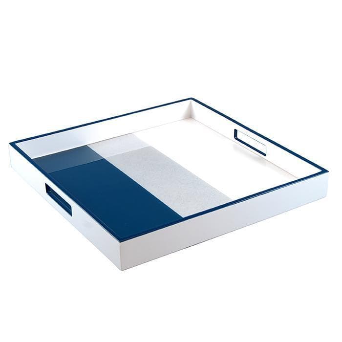 Lacquer Square Tray (Navy Blue with Shine Silver and White)