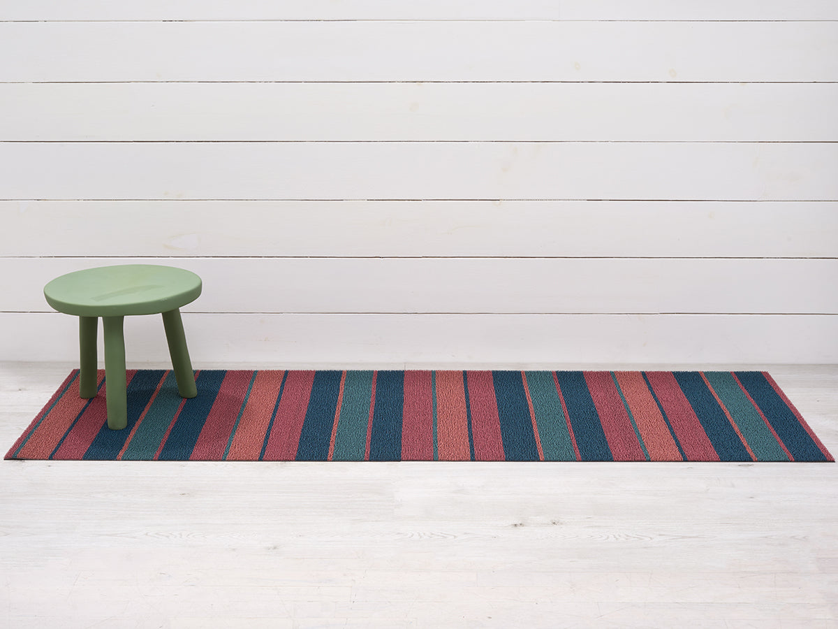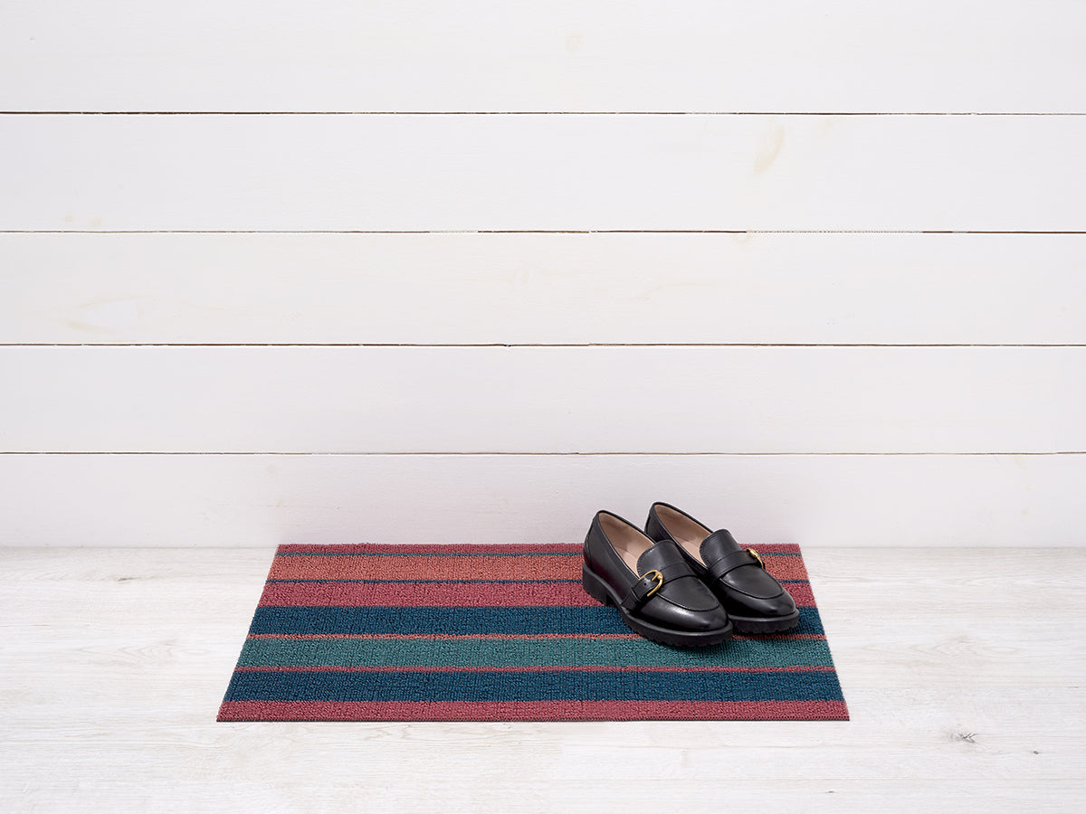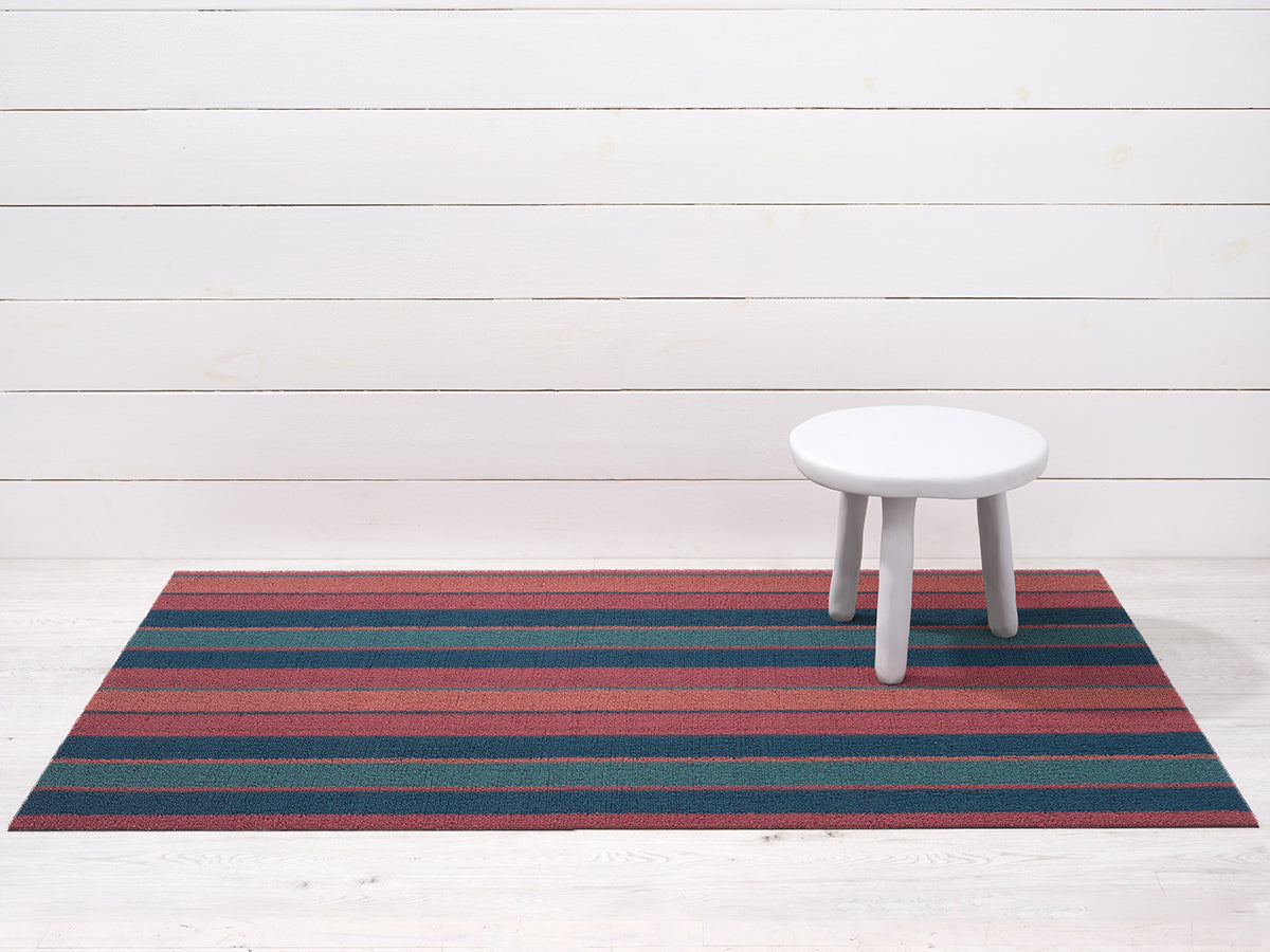 Broad bands of color are energized and harmonized by fine lines in Bolt Stripe. Thoughtfully selected hues—more subtle than those of most Shag mats—come together in distinctive, versatile palettes developed to complement indoor and outdoor spaces alike.