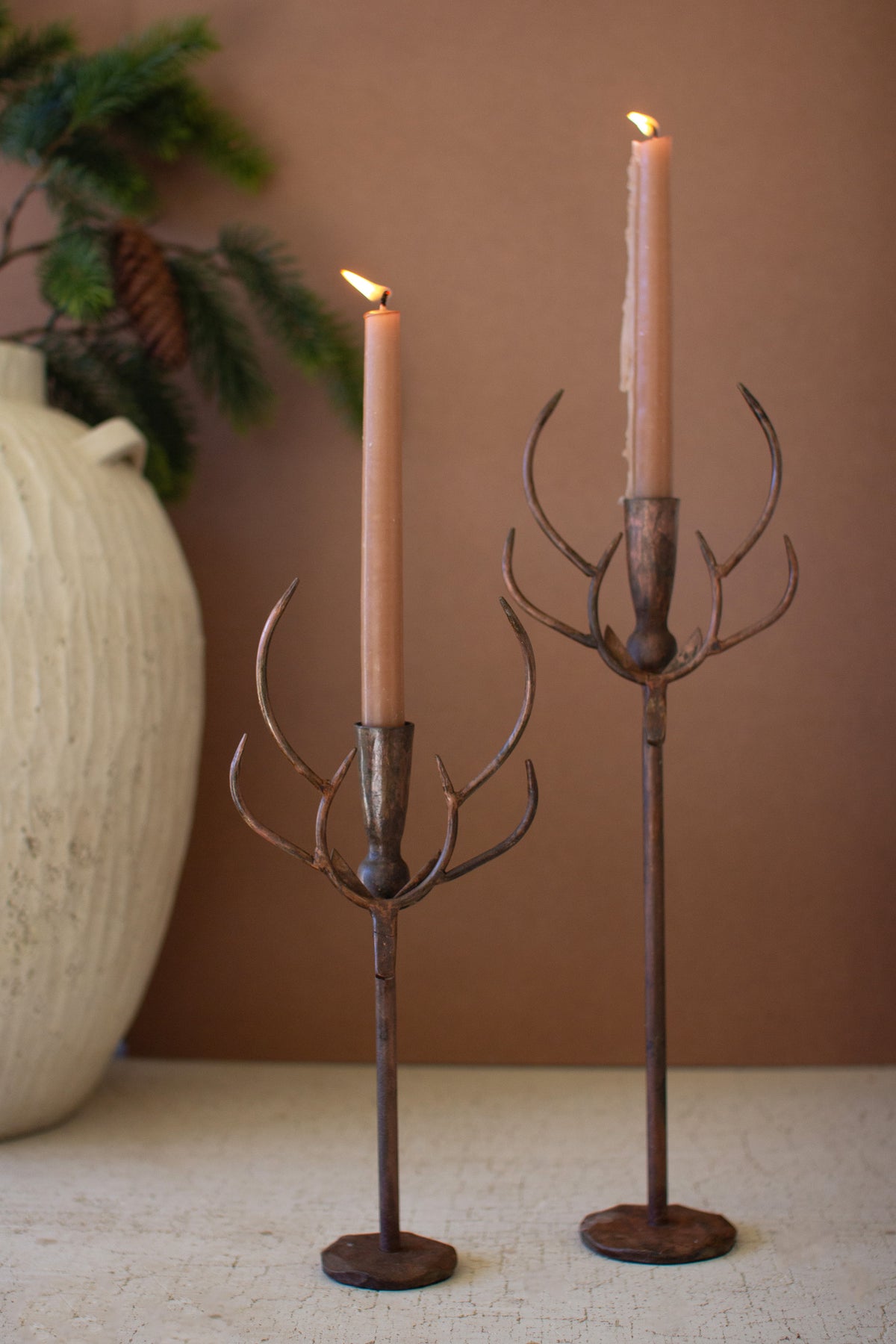 Set of 2 Forged Rustic Iron Deer Candle Holders