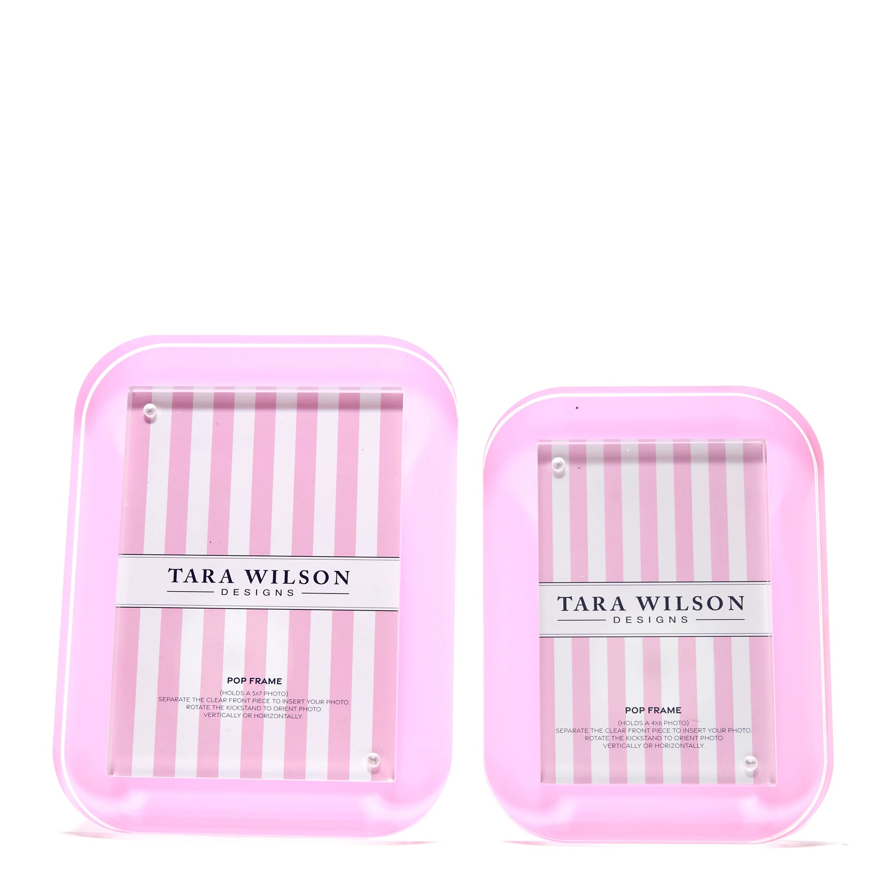 Unlike our traditional magnetic frames, the POP Frame features a twist-out kickstand that allows you to easily switch between vertical and horizontal display. To insert your photo, pull out the back stand, pop off the front panel, and drop in your picture—it’s that simple. Make your photos POP—literally—with this stunning acrylic frame.