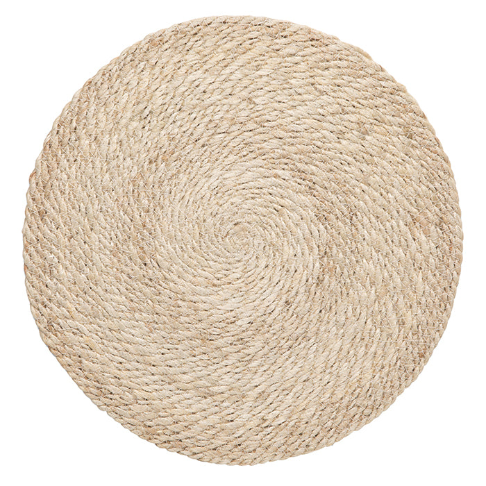 Twisted jute is hand-woven to create an organic spiral in the Whitley placemats.