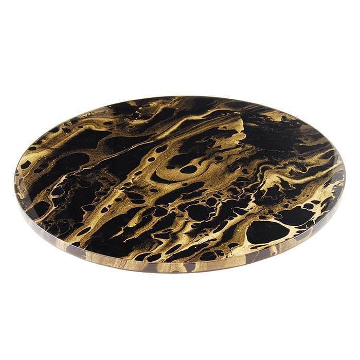 Black & Gold Marble Lacquer Lazy Susan 20"