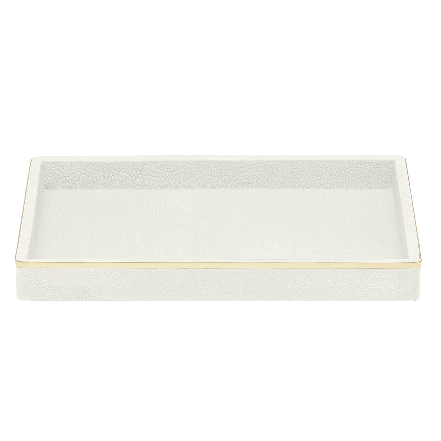 Pairing faux shagreen with delicate gold or silver trim, Bradford elevates the classic bathroom accessory set to peak luxury.