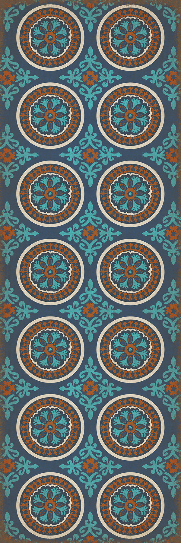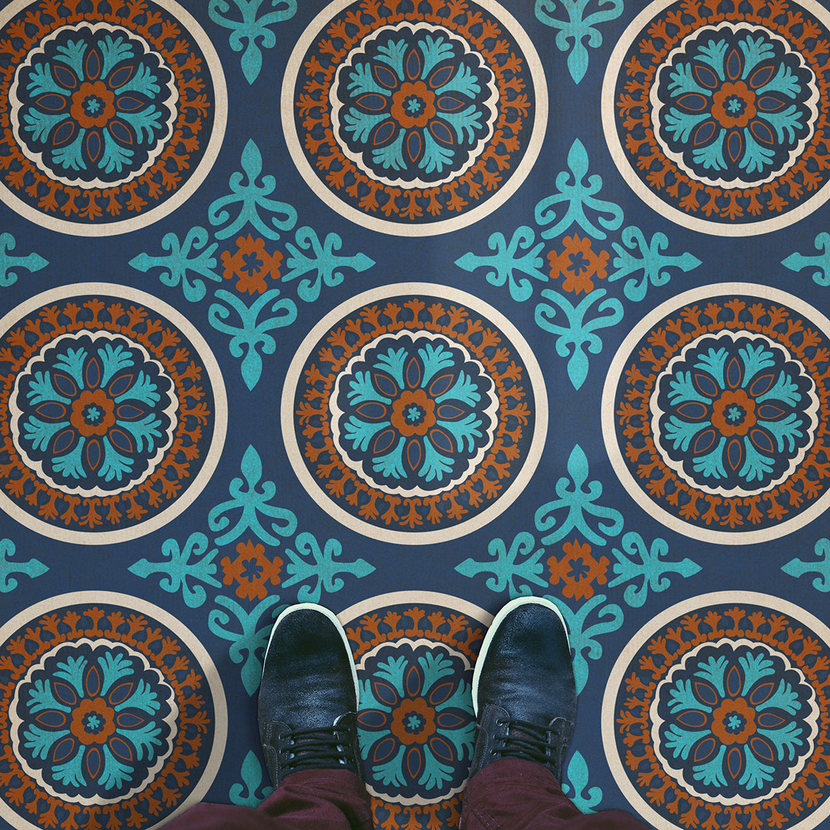 Inspired by old floor cloths and vintage linoleum, these vibrant vinyl rugs offer warm colors with beautiful aging. They are extremely durable, flexible, and also very easy to clean with a non-stick surface. Great in kitchens, playrooms, hallways, and offices.