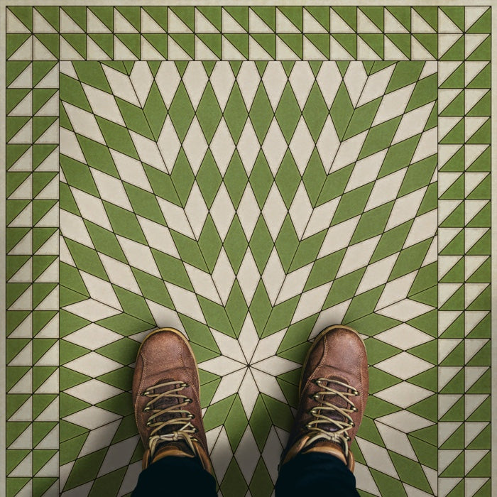 Inspired by old floor cloths and vintage linoleum, these vibrant vinyl mats offer warm colors with beautiful aging. They are extremely durable and flexible with a non-stick surface. Vintage Vinyl floor cloths are also very easy to clean and lay flat like rugs. Great in kitchens, baths, offices and controlled outdoor settings.