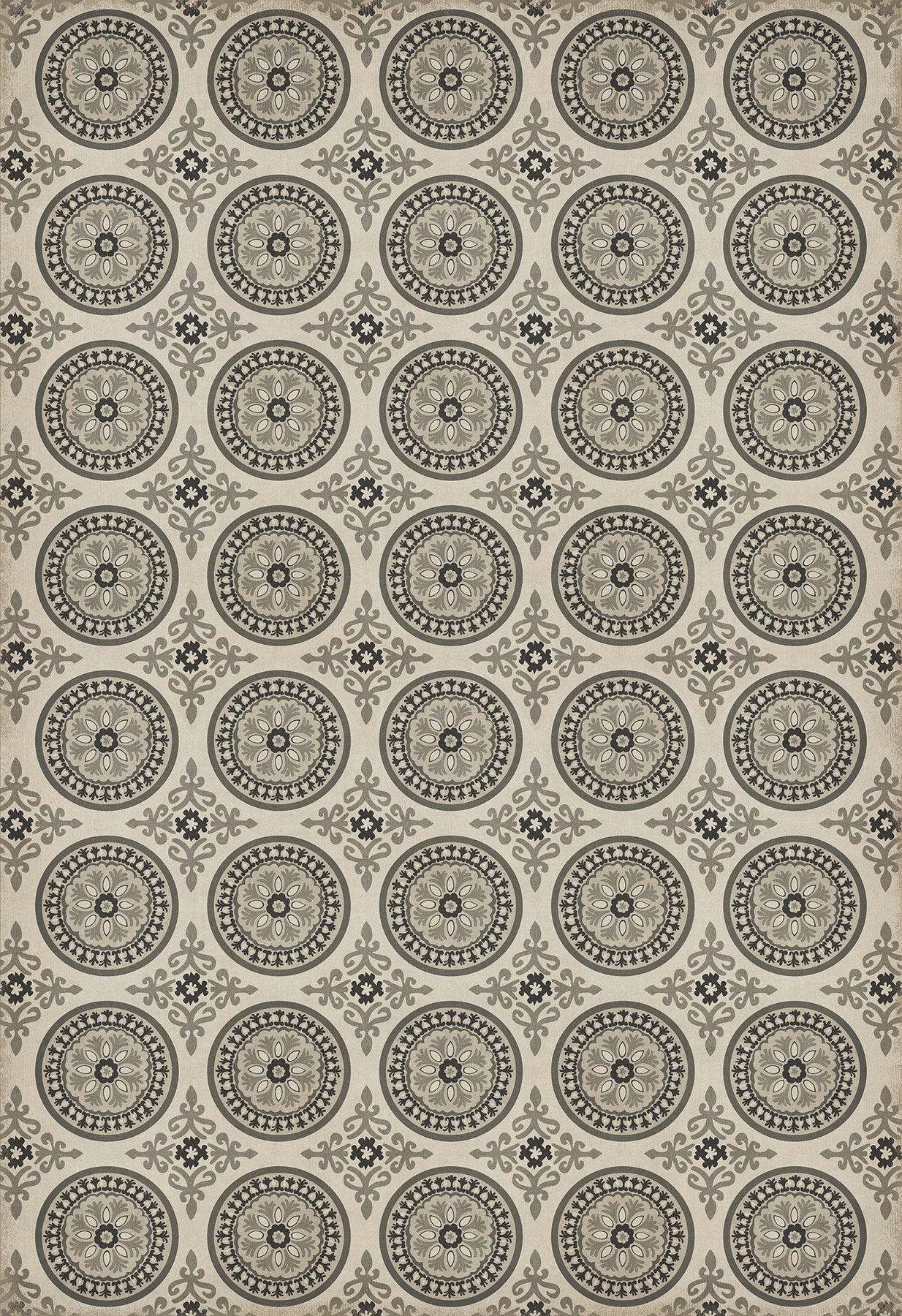 Vintage Vinyl rugs are made with two-ply vinyl that has a latex padded backing.