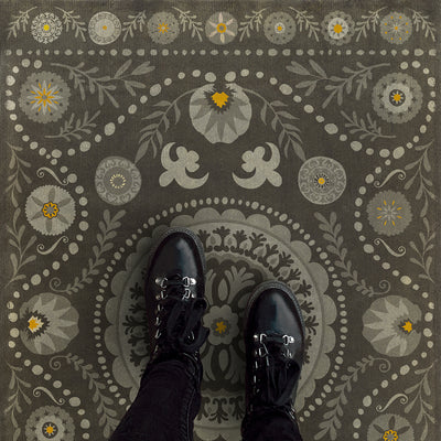 Inspired by old floor cloths and vintage linoleum, these vibrant vinyl rugs offer warm colors with beautiful aging. They are extremely durable, flexible, and also very easy to clean with a non-stick surface. Great in kitchens, playrooms, hallways, and offices.